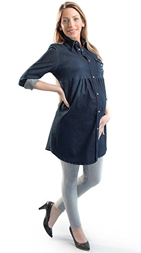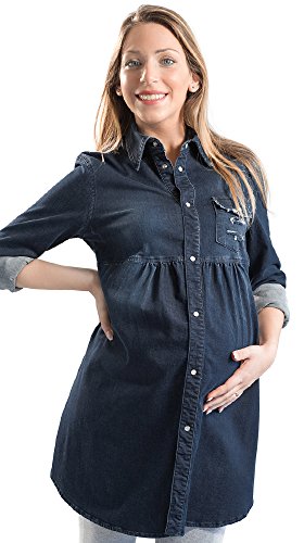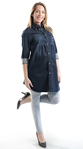 MAMAJEANS San Francisco - Camicia Jeans Donna Premaman, Manica Lunga Vintage - Made in Italy (XS, Denim Scuro)