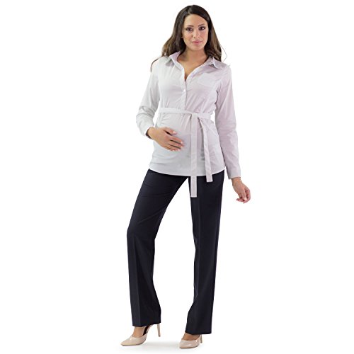 MAMAJEANS Pantaloni Premaman Donna Eleganti, Gamba Dritta, Ideali per L'Ufficio Tessuto Cascante Elasticizzato - Made in Italy (Blue 42 IT)