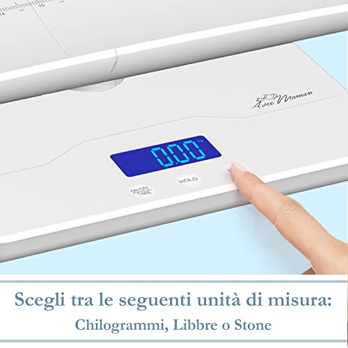 Avec Maman AM05 Bilancia neonato - Bilancia digitale per neonati e bambini - Superficie ampia e funzione di impostazione della tara | Perfetta per neonati sottopeso o prematuri - 100 kg - NUOVA 2022
