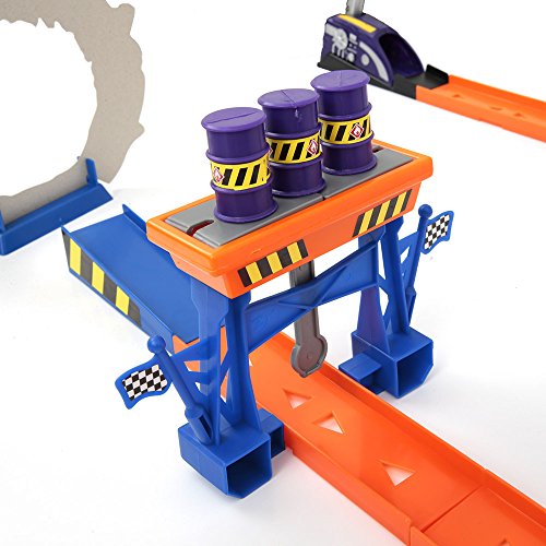 Mamatoy - Devil Jump - Set per Bambini con Pista da Corsa per Macchinine, con Due Giri Della Morte, Cerchi Infuocati e Barili e Due Macchinine Giocattolo - Adatto ai Bambini dai 3 Anni in su