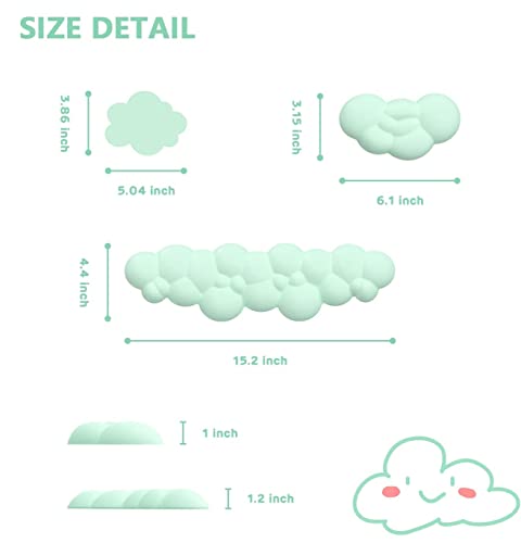 【Set nuvola 3 in 1 con dimensioni standard】 Il supporto per il polso del tappetino del mouse misura 6,1 x 2,9 x 0,9 pollici, il poggiapolsi della tastiera misura 15,2 * 4,4 * 1,2 pollici e il diametro del sottobicchiere è 5,04 (L) * 3,86 (L) pollici . Questi tappetini per mouse hanno una graziosa forma a nuvola e dimensioni perfette, il nuovo design concavo-convesso consente all'aria di circolare di più, evitando un uso soffocante a lungo termine e mantenendo il polso comodo.