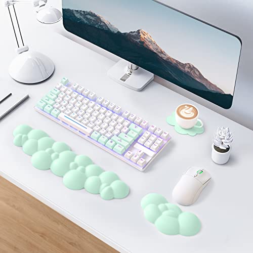 MAMBASNAKE Cloud Poggiapolsi Set Tastiera e Mouse con Sottobicchiere, Memory Foam Cuscino Ergonomico per Polso Supporto con Base Antiscivolo, Digitazione e Sollievo dal Dolore al Polso -Verde