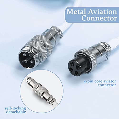 MAMBASNAKE C01 Cavo a Spirale Tastiera, Cavo USB C a Spirale per Tastiera Meccanica, Cavo da Type-C a USB-A per Tastiera da Gioco, TPU Coiled Cable USB C con Connettore Aviazione Metallo-Bianco