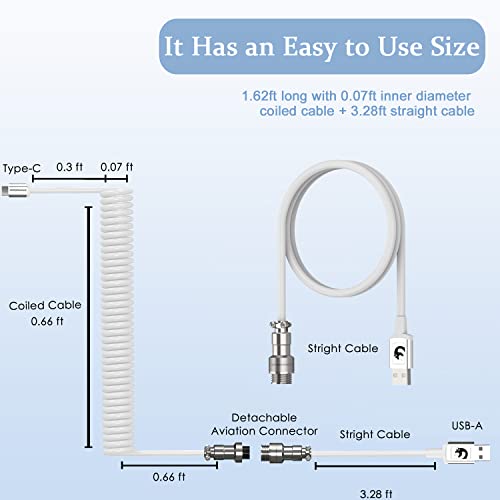 【Cavo Aviatore a Spirale】Questo cavo USB C keyboaed è abbastanza lungo da collegarsi facilmente alla tastiera, lungo 1,64 piedi con un cavo a spirale di 0,07 piedi di diametro interno + un cavo dritto da 3,28 piedi. Rispetto ai norm