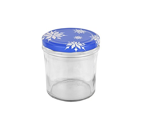 MamboCat Set di 25 vasetti in vetro da 350 ml a 82 coperchi con fiocchi di neve incl. libro di ricette per marmellate e conserve