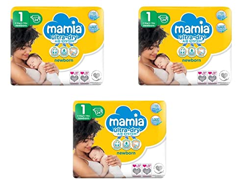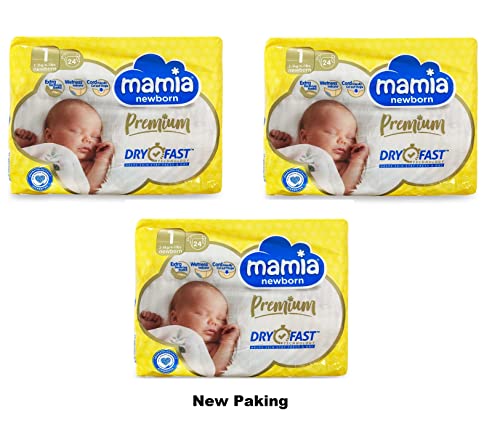 Mamia - Pannolini per neonati, taglia 1, 2-5 kg, 3 x 24 (72 pannolini)