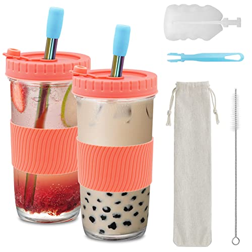 Mamiddle 730ml/24oz Bubble Tea Tazza con Coperchio e Cannuccia Acciaio Riutilizzabile Bubble Tea Kit Per Frullati, Succhi, Frullati, Birre (Rosa*2)