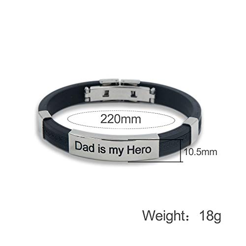 MAMIJUX Bracciale Dad is my Hero in acciaio e silicone nero