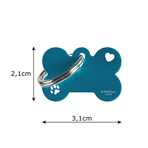 MAMIPets MEDAGLIETTA Cane Osso con Incisione Laser (Piccolo, Celeste)