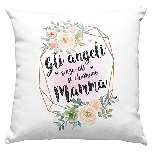 Mamma Cuscino Regalo donna compleanno originale Idee Regali per lei per Natale festa della mamma, Angeli senza ali Mamma - con Imbottitura (40_x_40_cm, Bianco)