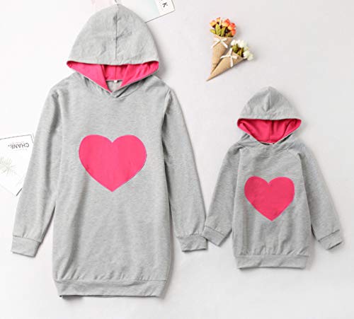 Mamma Figlia Famiglia Felpe con Cappuccio Manica Lunga Donna Ragazze Felpa Pullover Adulto Bambini Stampa Forma di Cuore Camicia Tops Hoodies Inverno T Shirt Maglietta Camicetta Rosso Adulto L