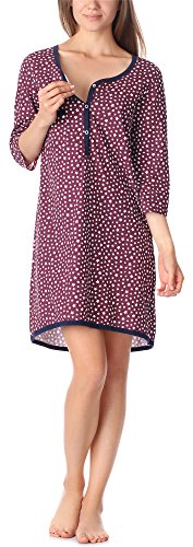 Be Mammy Camicia da Notte Premaman Funzione Allattamento BE20-176 (Borgogna-Stelle-Blu Marino, M)