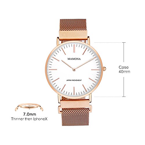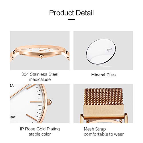 MAMONA Set Regalo con Orologio al Quarzo di Oro Rosa Orologio Mesh Band Super Sottile Resistente All'acqua L3881RGGT