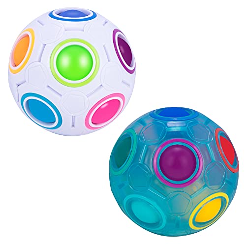 Mamowla Magic Rainbow Ball Palla 2 pack Magica Puzzle 3D Intelligenza Sfera di Calcio Stile Arcobaleno Cubo Speed Cube Fidget Giocattolo Giocattolo Educativo per Bambini Luminosi,(bianco+blu)