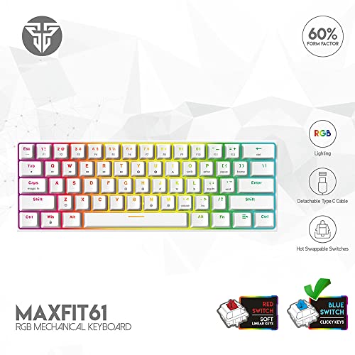 Mamre MAXFIT61 Tastiera meccanica cablata RGB al 60%, 61 tasti Tastiera da gioco programmabile di tipo C sostituibile a caldo, interruttore blu Outemu, bianco