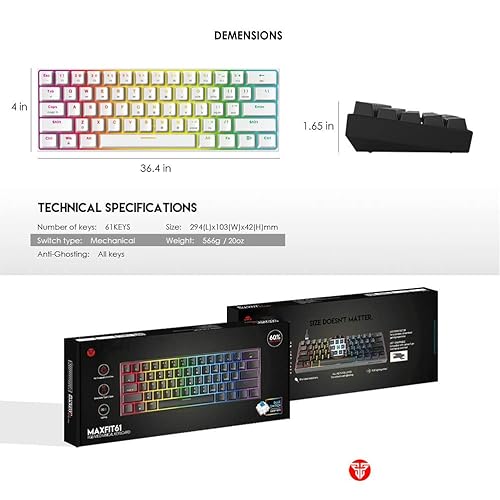 Dimensioni ridotte, piena potenza: fattore di forma del 60%, 61 tasti non significano taglienti. MAXFIT ha tutta la potenza e le capacità di una tastiera di dimensioni standard, ma offre più spazio per i movimenti del mouse e configurazioni più piccole.