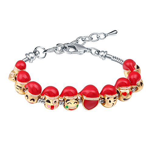 MANBARA Donna 10 Perle di intercambiabile Emoji Bracciale con cappello di Natale teenager Raccogliere Gioielli