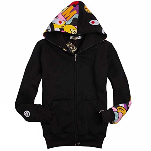 Manbozix Stampa Scimmia Shark Hooded Sweatshirt Pullover Doppia Zippers Felpa con Maniche Lunghe Nero Velluto L