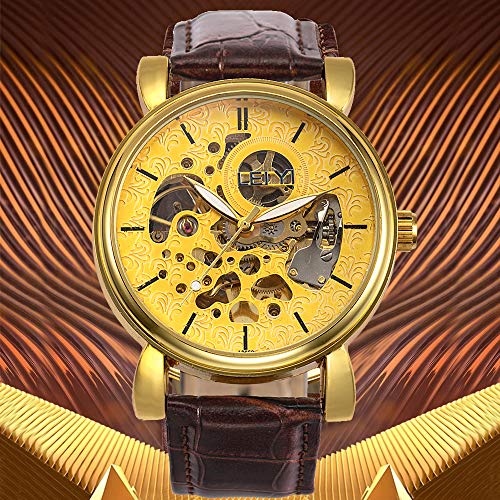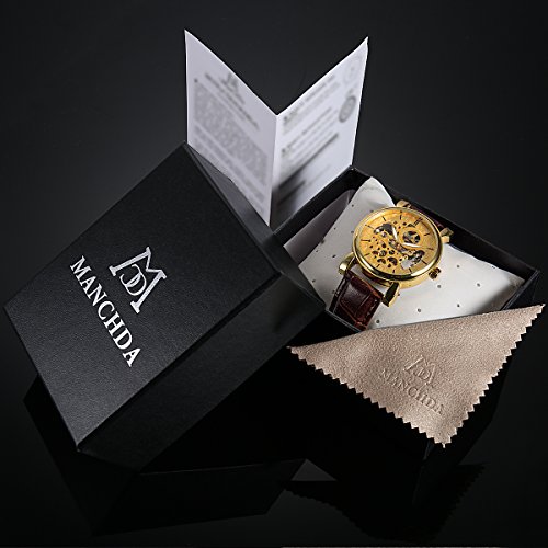 ManChDa Classico D'oro Orologio da polso per Uomini Autoavvolgente In pelle Marrone + Scatola Regalo
