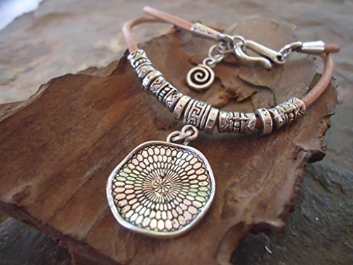 MANDALA collana del collare ✿ pelle in sabbia e spaziatore (1580)