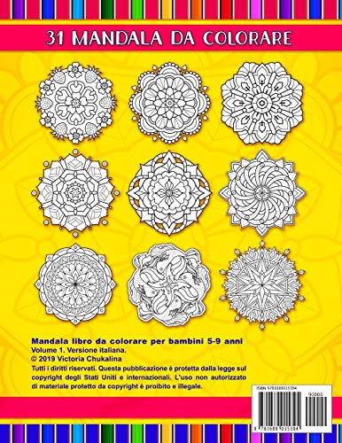 Mandala libro da colorare per bambini 5-9 anni: 31 pagine con facili e avanzati mandala geometrici, fiori e animali