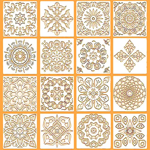 Mandala Stencil, 16 Pezzi Stencil per Pittura, Riutilizzabili Tagliati al Laser Mandala Templates, Disegni per Mandala Stencil per Mobili,Piastrelle, Muri, Scrapbook Pareti DIY Decorazione