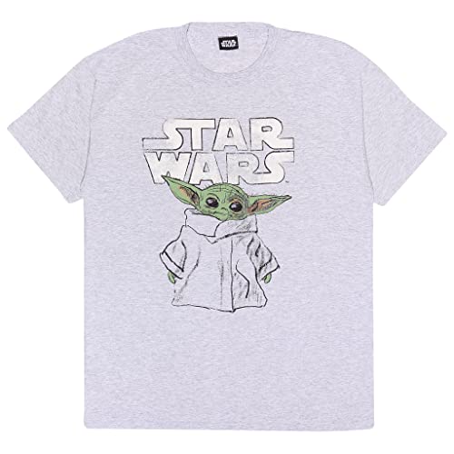 Star Wars The Mandalorian The Child Sketch T-Shirt in Forma da Ragazzo, da Donna, S-2XL, Heather Grey, Offizielle Ware