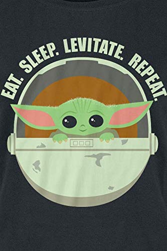 Star Wars The Mandalorian - Eat, Sleep, Levitate - Grogu Donna T-Shirt Nero M 100% Cotone Regular