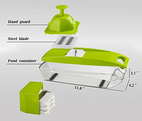 【FACILE DA PULIRE E RIPORRE】Può essere assemblato in fretta. La base del contenitore di alimenti può catturare tutte le sue fette, frammenti e tagli in tempo reale. E ‘possibile utilizzare la spazzola bianca per pulire l'affettatrice Mandolino.