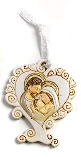 Mandorle bomboniere 24 Pezzi Bomboniera Comunione Cresima Battesimo Albero della Vita con Sacra Famiglia in Resina da Appendere cm. 5,4