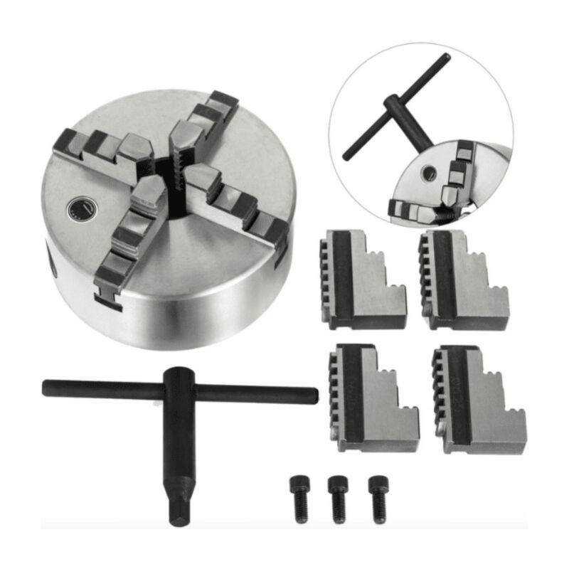 MANDRINO PROFESSIONALE AUTOCENTRANTE PER TORNIO 4 + 4 GRIFFE � 200 MANDRINO A 4 GANASCE IN GHISA CON GRIFFE IN ACCIAIO TEMPERATE REVERSIBILI. APERTURA MASSIMA 200 MM. IN DOTAZIONE UNA CHIAVE A T PESO MANDRINO: 17 kG DATI TECNICI: D= 200mm D1= 165mm D2= 180mm D3(min)= 65mm h(min)= 5mm H1= 75mm H= 109mm d= M10 3-d = 3mm INFORMAZIONI PER INFO 3341267467 tel. TUTTI I PACCHI SONO TRACCIABILI ONLINE
