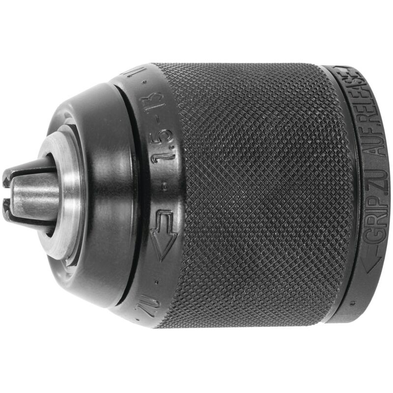 il mandrino può essere aperto con una sola mano quando il trapano si arresta. Forma estremamente corta. Dati tecnici Tipo di prodotto Mandrino senza chiave Bloccaggio radiale sì Campo di serraggio, mm 1,5 - 13 Modello 13-1/2 Adattatore, Zoll 1/2-20 Lunghezza della testina aperta, mm 51 Lunghezza della testina chiusa, mm 60,9 Potenza massima, W 1.100 ⌀ Esterno, mm 42,4
