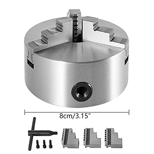 Mandrino girevole a 3 ganasce K11 80 - 160 diametro mandrino autocentrante in metallo per tornitore, ricambi reversibili, accessorio per tornitrice (K11 80)