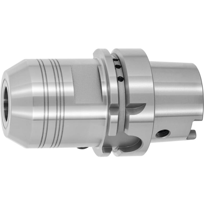 Resistenza complessiva molto elevata grazie alla struttura ottimizzata. * Con foro Balluffchip / RFID. * Possibilità di regolazione assiale della lunghezza, corsa di regolazione 10 mm. * Flessibile grazie all'impiego di bussole di riduzione. Vantaggi: * Massime coppie trasmissibili (550 Nm), pertanto sicurezza di processo. * Proprietà di smorzamento ideali, pertanto una superficie del pezzo ottimale, una maggiore durata e nessun rischio di danni al mandrino. Uso: * In particolare nella truciolatura pesante durante la fresatura. * Per il serraggio di utensili con tolleranza codolo h6. Fornitura: Inclusa chiave esagonale con impugnatura a T. Accessori speciali: Raccordo per lubrorefrigerante n. art. 309880, chiave a bussola n. art. 309890, bussole di riduzione n. art. 302135 - 302187. Nota: Prestare attenzione in caso di utensili extralunghi e durante la lavorazione TPC. Dati tecnici Precisione della concentricità radiale µm ≤ 3 Adattatore HSK-A 63 corto Qualità equilibratura G con