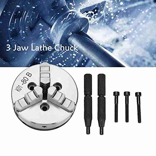 Mandrino da 3,1 pollici a 3 ganasce, mandrino a ganasce reversibile indipendente autocentrante manuale SANOU K01-80B, accessori per tornio con mandrino in metallo di precisione