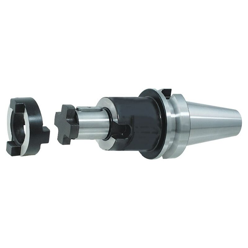 Cono, attacco fresa di supporto e superfici di appoggio rettificati. Tutti i codoli con tornitura dura (silenziosità). Qualità di equilibratura G 2,5 / 25.000 min-1. Forma ADB. Uso: Con chiavetta per frese con scanalature longitudinali, ad esempio DIN 841. Con anello di trascinamento per frese con scanalatura trasversale DIN 1880 e frese a inserti DIN 1830. Fornitura: Inclusa chiavetta, anello di trascinamento e vite di serraggio. Accessori speciali: Codoli (AB) n. art. 308760 − 308802. Chiave speciale n. art. 309840. Nota: Passaggio interno del lubrorefrigerante solo con vite di serraggio adatta n. art. 309861. Dati tecnici Forma ADB Strategia di truciolatura HPC Precisione della concentricità radiale µm ≤ 5 Qualità equilibratura G con numero di giri G 2,5 con 25000 min-1 Norma DIN 6358 Adattatore BT 50 A = 100 Tipo di prodotto Attacchi frese ⌀ Attacco D1, mm 40 Sporgenza totale Dim. A, mm 100 Mandrino di ⌀ d1, mm 40 Vite di serraggio per fresa di ricambio n. art. 309860 / 309861 40