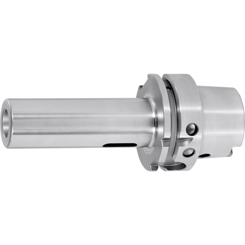 Rettifica all'interno e all'esterno con passo esatto. * Con foro Balluffchip / RFID. * Codoli con tornitura dura (silenziosità!). * Superfici funzionali HSK rettificate. Accessori speciali: Raccordo per lubrorefrigerante n. art. 309880, chiavi a bussola n. art. 309890. Dati tecnici Strategia di truciolatura HSC Qualità equilibratura G con numero di giri G 2,5 con 25000 min-1 Precisione della concentricità radiale µm ≤ 8 Forma A Adattatore HSK-A 63 Tipo di prodotto Adattatore per attacchi Sporgenza totale Dim. A, mm 100 Cono Morse interno 1 ⌀ Esterno D, mm 25