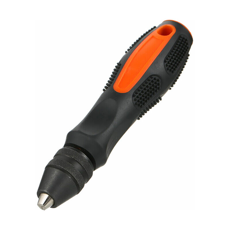 Un trapano a mano ergonomico, molto comodo da usare e di buona qualità ma economico. Adatto per mini trapano da 0,5-8 mm. Caratteristiche: ergonomico, molto comodo da usare. Il manico è realizzato in plastica di alta qualità, antiscivolo. Il tubo è realizzato in acciaio inossidabile di alta qualità e molto resistente. Adatto per 0,5-8 mm. Specifica mini trapano: Materiale: plastica, acciaio Colore articolo: nero e arancione > Diametro mandrino: 6 mm / 0,2 pollici Campo di serraggio: 0,5-8 mm / 0,02-0,3 pollici Dimensioni Articolo n .: 155 * 30 * 30 mm / 6,1 * 1,2 * 1,2 nella dimensione del pacchetto: 160 * 30 * 30 mm/6,3 * 1,2 * 1,2 pollici Peso del pacchetto: Articolo: 140 g / 4,9 once Peso del pacchetto: 145 g / 5,1 once Elenchi dei pacchetti: 1 * Trapano a mano