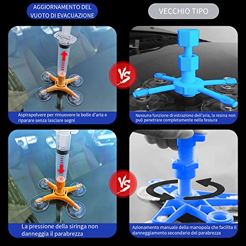 DESIGN AGGIORNATO: Il kit di riparazione del parabrezza dal design aggiornato è dotato di siringhe a pressione, che possono rimuovere l'aria dalla fessura per ripristinarla al meglio. Risparmia tempo e denaro per evitare perdite. Riporta il parabrezza a uno stato quasi nuovo. Effetto di mantenimento a lunga durata.
