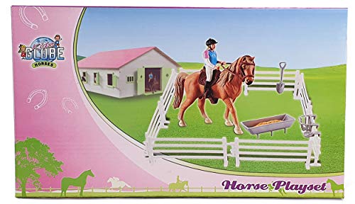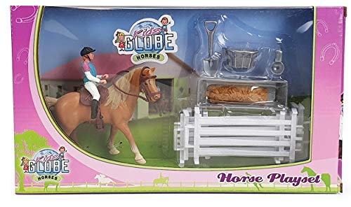 Van Manen Kids Globe Horses 640073 - Set da gioco per cavalli, con 1 cavallo, 1 cavaliere, recinzione e accessori