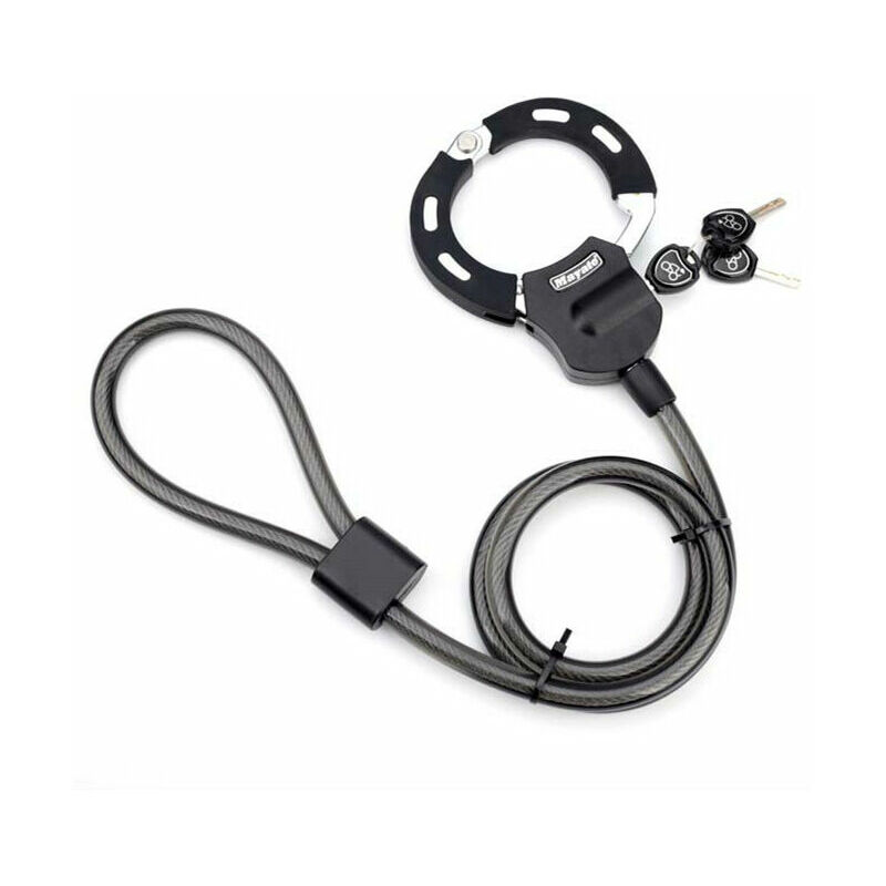 Utilizzo della serratura: questo sistema di chiusura è ideale per assicurare biciclette, scooter e passeggini a una recinzione, una recinzione o un palo Flessibilità: la manette si attacca a molti punti di ancoraggio (recinzione, cancello, post) e il cavo può fissare gli oggetti più grandi Design resistente: il cavo è realizzato in acciaio intrecciato per garantire flessibilità e resistenza con un rivestimento protettivo in vinile per evitare graffi Massima sicurezza: meccanismo di bloccaggio con chiave a spillo integrato per una maggiore resistenza alla forzatura Caratteristiche: cavo lungo 1 m e diametro 8 mm;