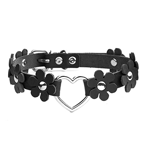 Manfnee 4Pcs Choker Cool Punk Collana a forma di cuore Rock Gothic Nero regolabile Donna