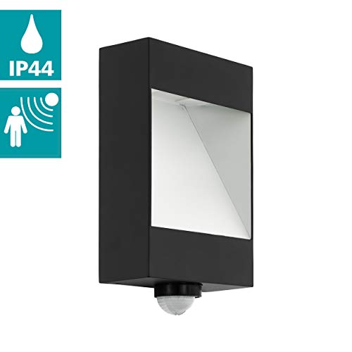 Eglo Manfria Lampada da Parete a LED per Esterni, con Sensore in Alluminio, IP44. con Sensore di Movimento, Antracite, Bianco