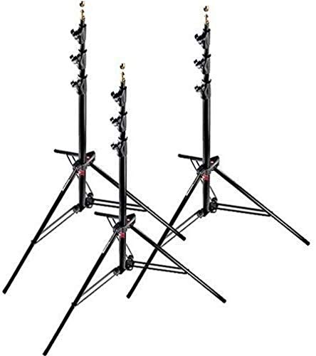 Manfrotto 1004BAC-3 Kit 3 Stativi, Serie Babylight, Massima Altezza 366 cm per Luci, 4 Sezioni, in Alluminio, Nero