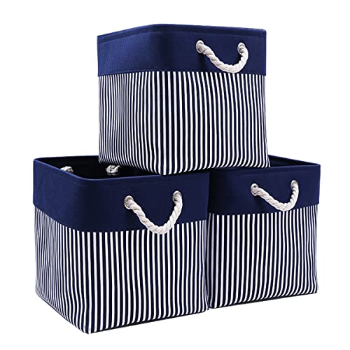 Mangata Cesto portaoggetti in tessuto, 33 x 33 x 33 cm, per armadi, scaffali, armadi, strisce blu (33 x 33 cm, confezione da 3 pezzi)