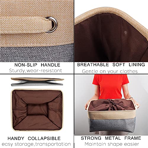 Mangata Contenitori per Armadio, Scatole per Armadio Vestiti, Cesto portaoggetti Tessuto con Manici per Ripiani, Giocattoli (Pieghevole, Grigio Biege, Grande)