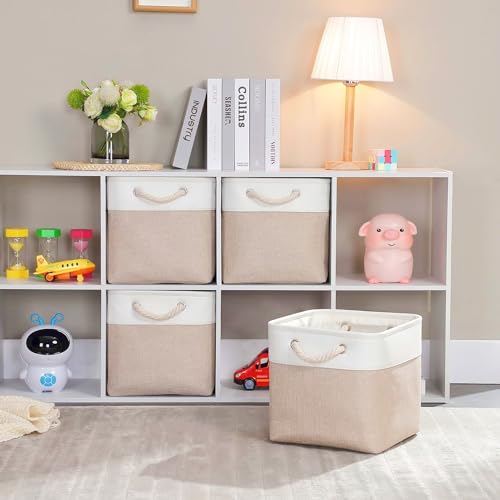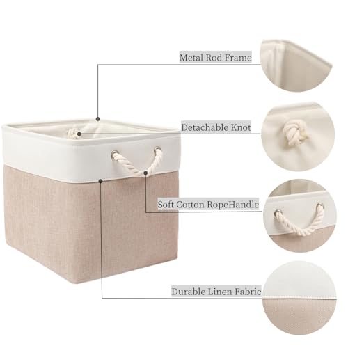 Mangata Scatole per Armadio Tessuto, 33 x 38 x 33cm Scatola Porta oggetti,Cestini in Tessuto di Grandi Dimensioni(Bianco cachi,4 Pack)