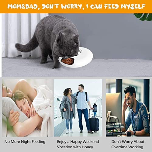 Isolare cibo secco e umido: il distributore automatico di cibo per animali domestici è realizzato in materiale ABS, che può proteggere la salute degli animali domestici. Si prega di organizzare piccoli pasti per aiutare gli animali domestici che mangiano troppo o troppo velocemente. Ogni scomparto può contenere 180 ml, per conservare cibo secco/umido o deliziosi snack per allevare gatti e cani di piccola e media taglia durante il lavoro, in viaggio o in vacanza.