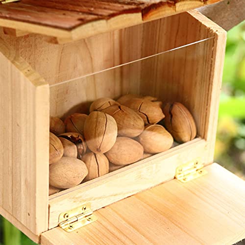 Mangiatoia per Scoiattoli da Appendere in Legno con Tetto e Finestra Trasparente Casetta per Mangime Scoiattolo per Giardino Cortile