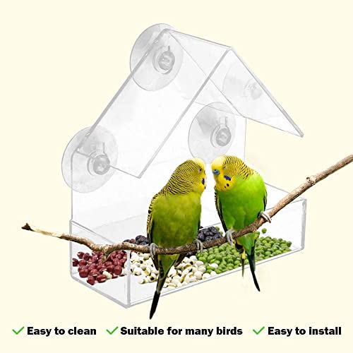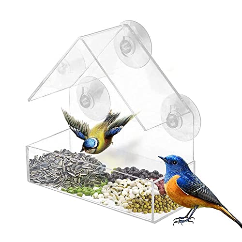 Mangiatoia per Uccelli Trasparente con 3 Ventose, Casetta per Uccelli in Plastica Rimovibile, Resistente alle Intemperie, Fissata al Muro su Windows